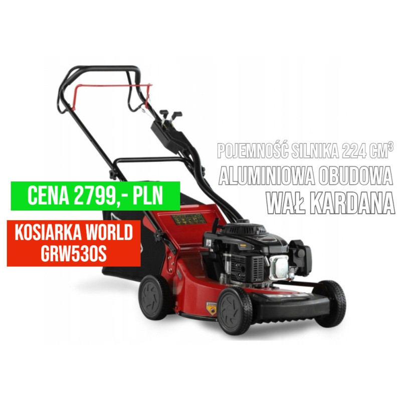 Podsumowując, World GRW 530S to solidna spalinowa kosiarka z samobieżnym napędem wałem kardana, mocnym silnikiem i funkcjami zbierania, mulczowania oraz wyrzutu trawy. Jej budowa i parametry sprawiają, że jest odpowiednia do większych i wymagających powierzchni trawiastych, gdzie ważna jest trwałość i komfort pracy.